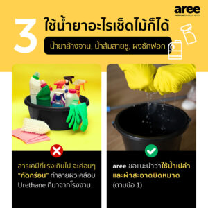• หลีกเลี่ยงน้ำยาที่ไม่ได้ออกแบบมาสำหรับพื้นไม้โดยเฉพาะ