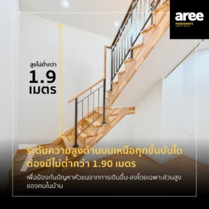 ระยะจากขั้นบันไดถึงโครงสร้างด้านบนควรสูง ไม่น้อยกว่า 1.90 เมตร