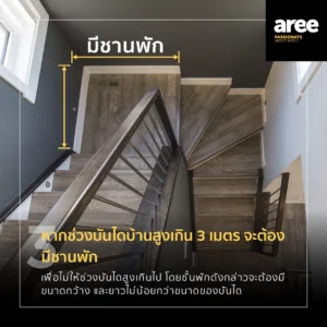 ในกรณีที่ความสูงของบันไดมากกว่า 3 เมตร จำเป็นต้องมี ชานพักบันได (Landing)