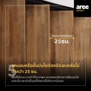 ตามหลัก ขนาดบันไดบ้านมาตรฐาน ลูกนอนควรมีระยะไม่น้อยกว่า 25 เซนติเมตร
