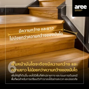 พื้นหน้าบันไดควรมีความกว้างและความยาว ไม่น้อยกว่าความกว้างของบันได